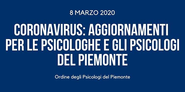 Coronavirus: aggiornamenti per le Psicologhe e gli Psicologi del Piemonte