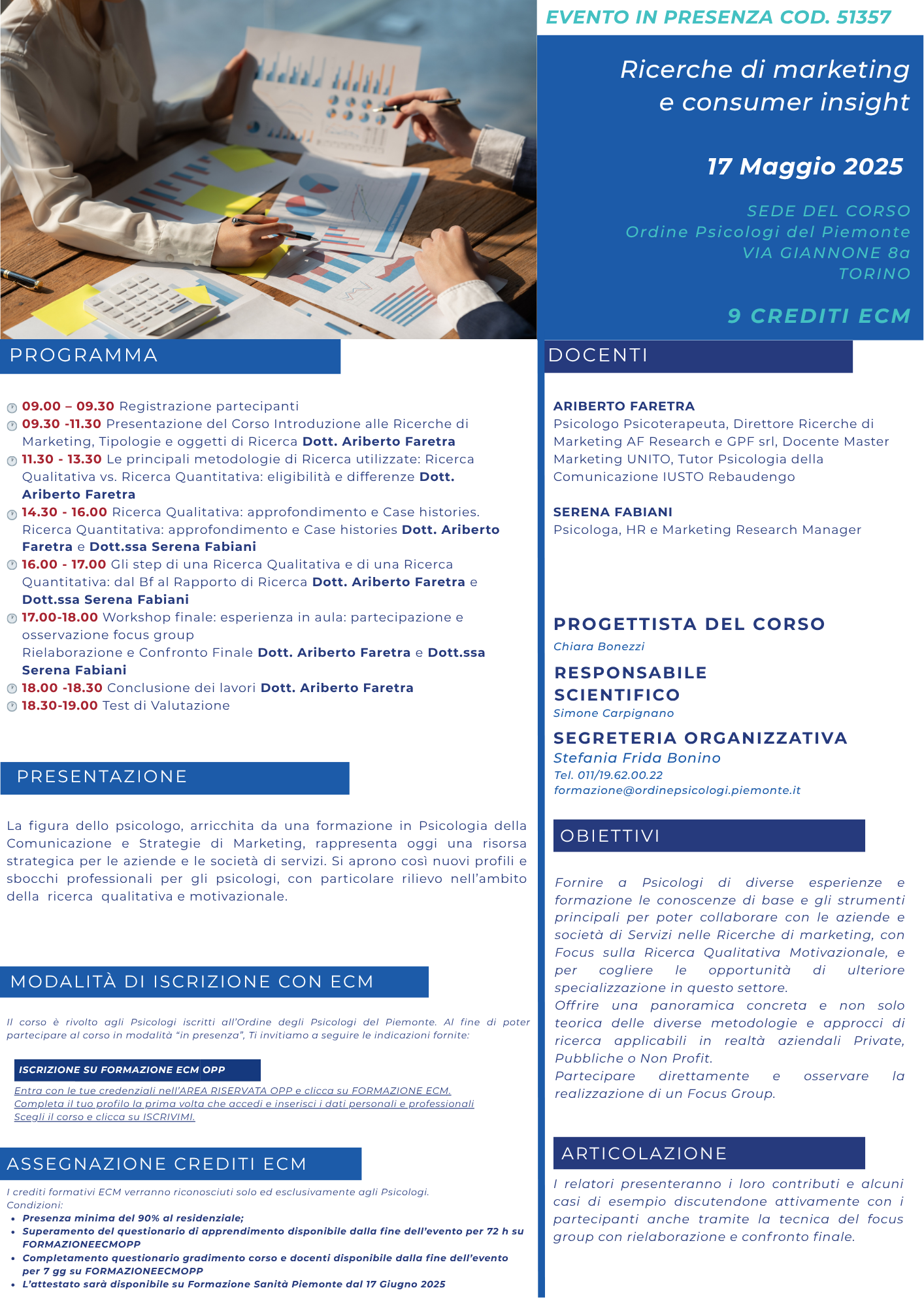 nell’ambito dell’offerta formativa ECM in forma gratuita 2025 l’OPP propone l’evento dal titolo “RICERCHE DI MARKETING E CONSUMER INSIGHT”.