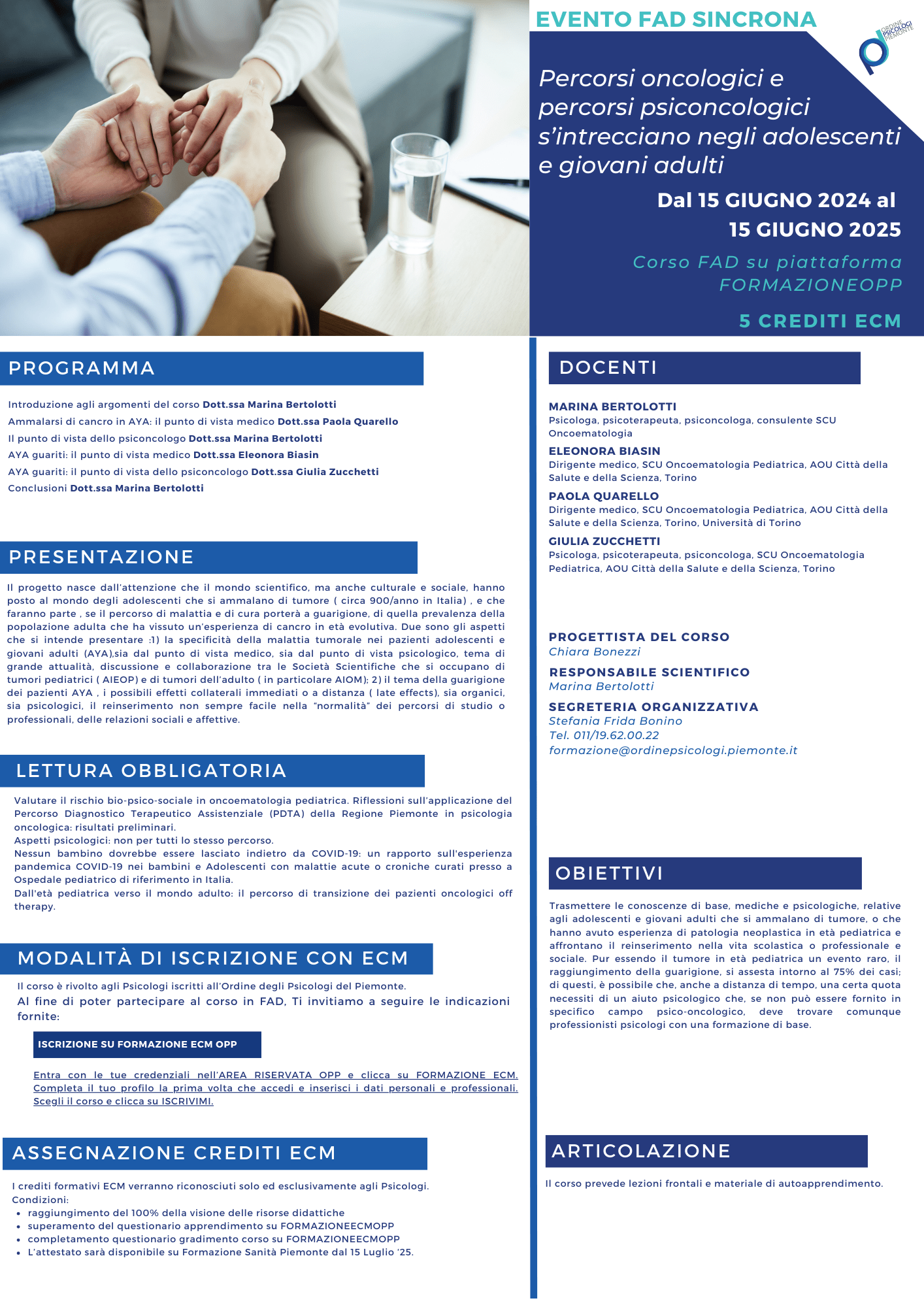 Obiettivo della formazione proposta è trasmettere le conoscenze di base, mediche e psicologiche, relative agli adolescenti e giovani adulti che si ammalano di tumore, o che hanno avuto esperienza di patologia neoplastica in età pediatrica