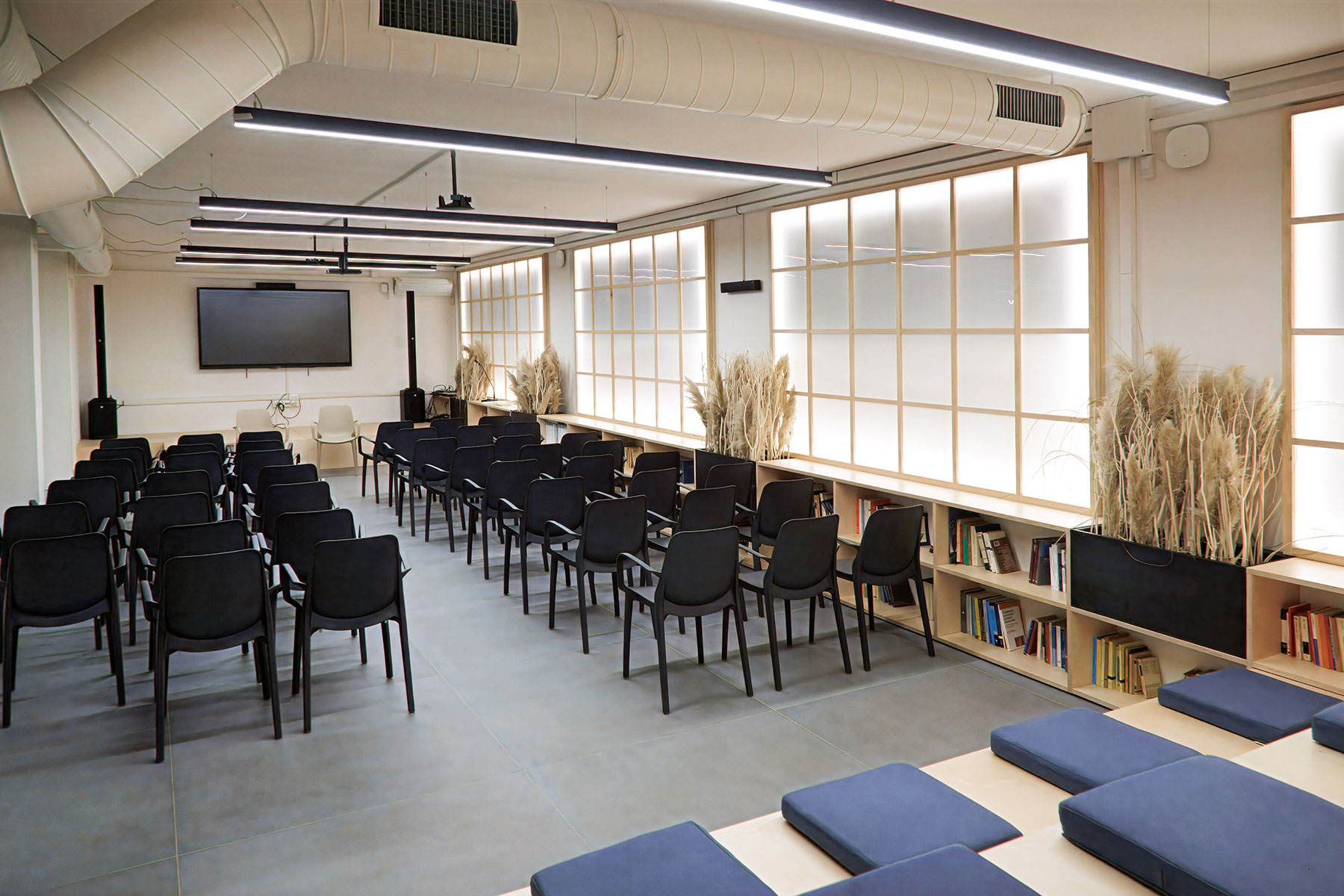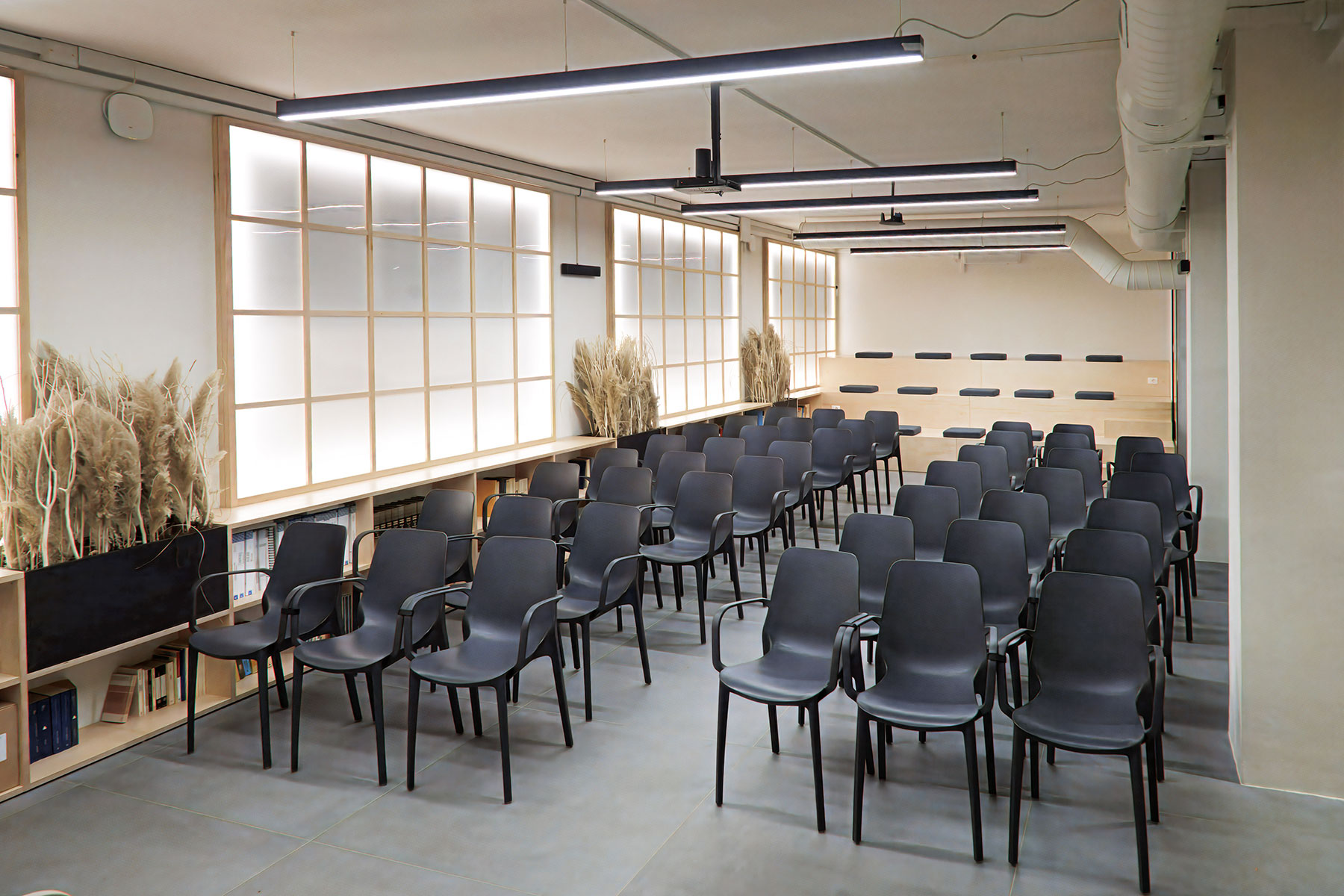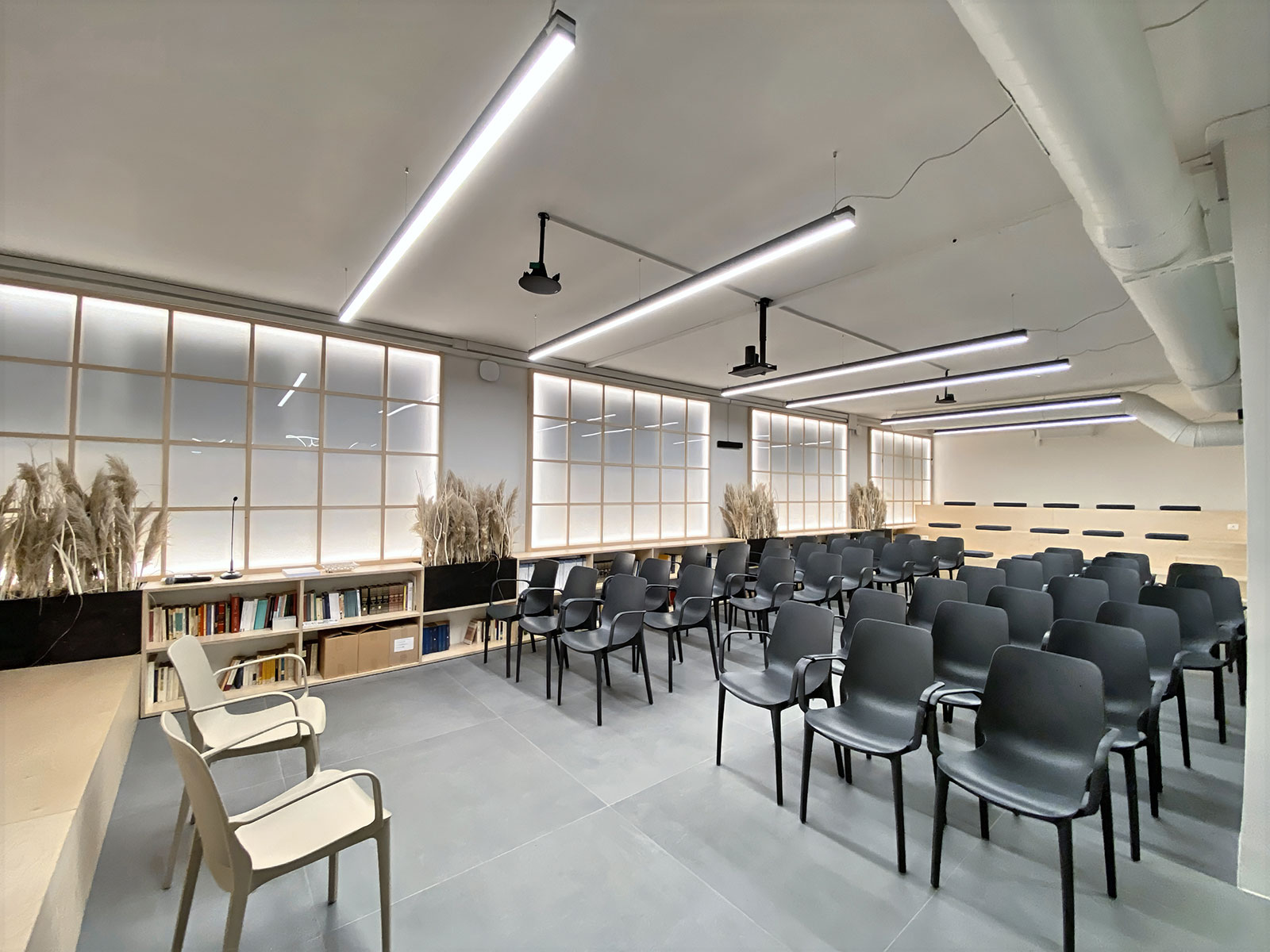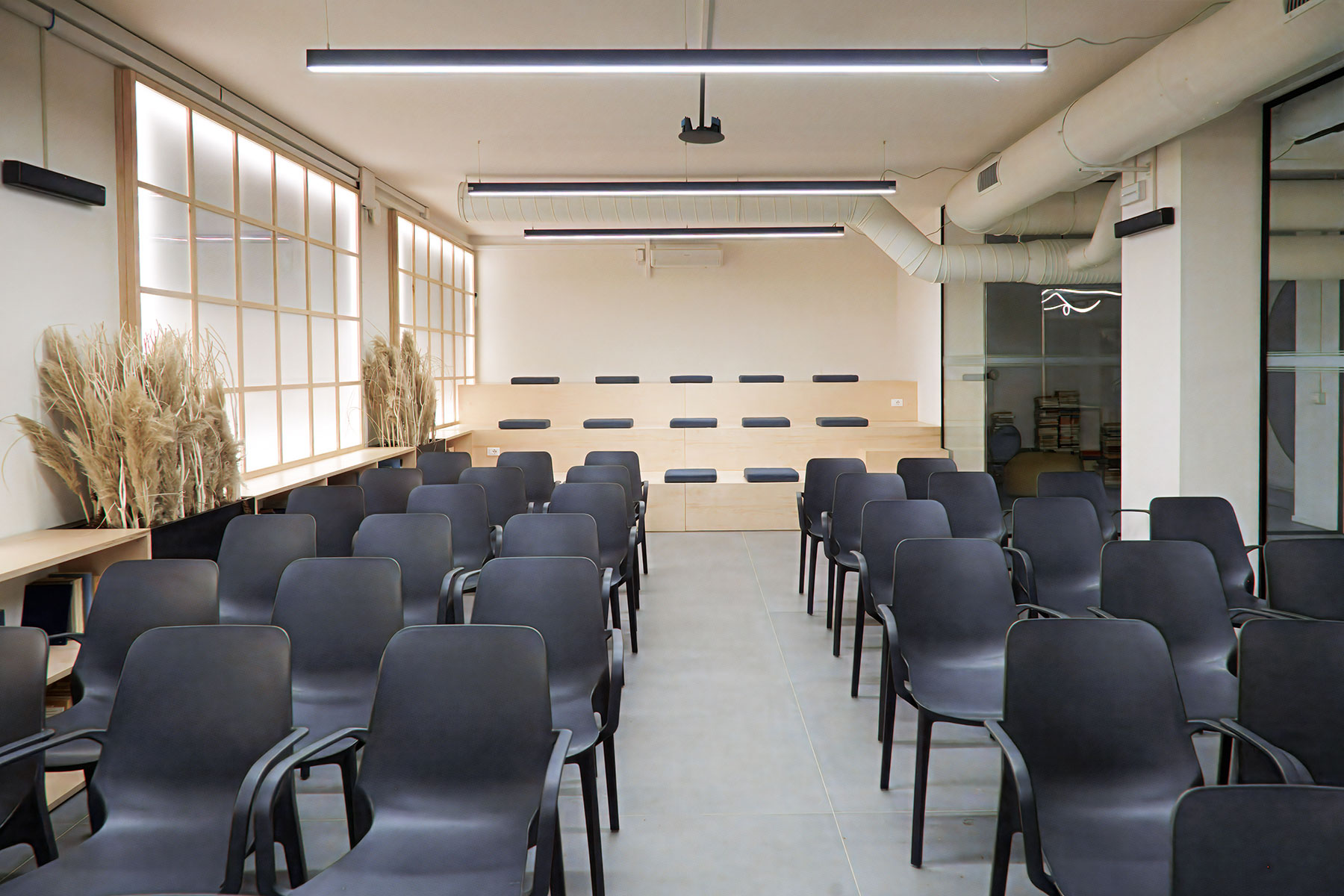 Questo spazio della Casa della Psicologia, luminoso e moderno, è pensato per ospitare eventi, incontri e workshop in un ambiente accogliente e funzionale. La sala, che ha una capienza di 64 persone, è dotata di monitor, pc portatile, impianto audio e ampia libreria.