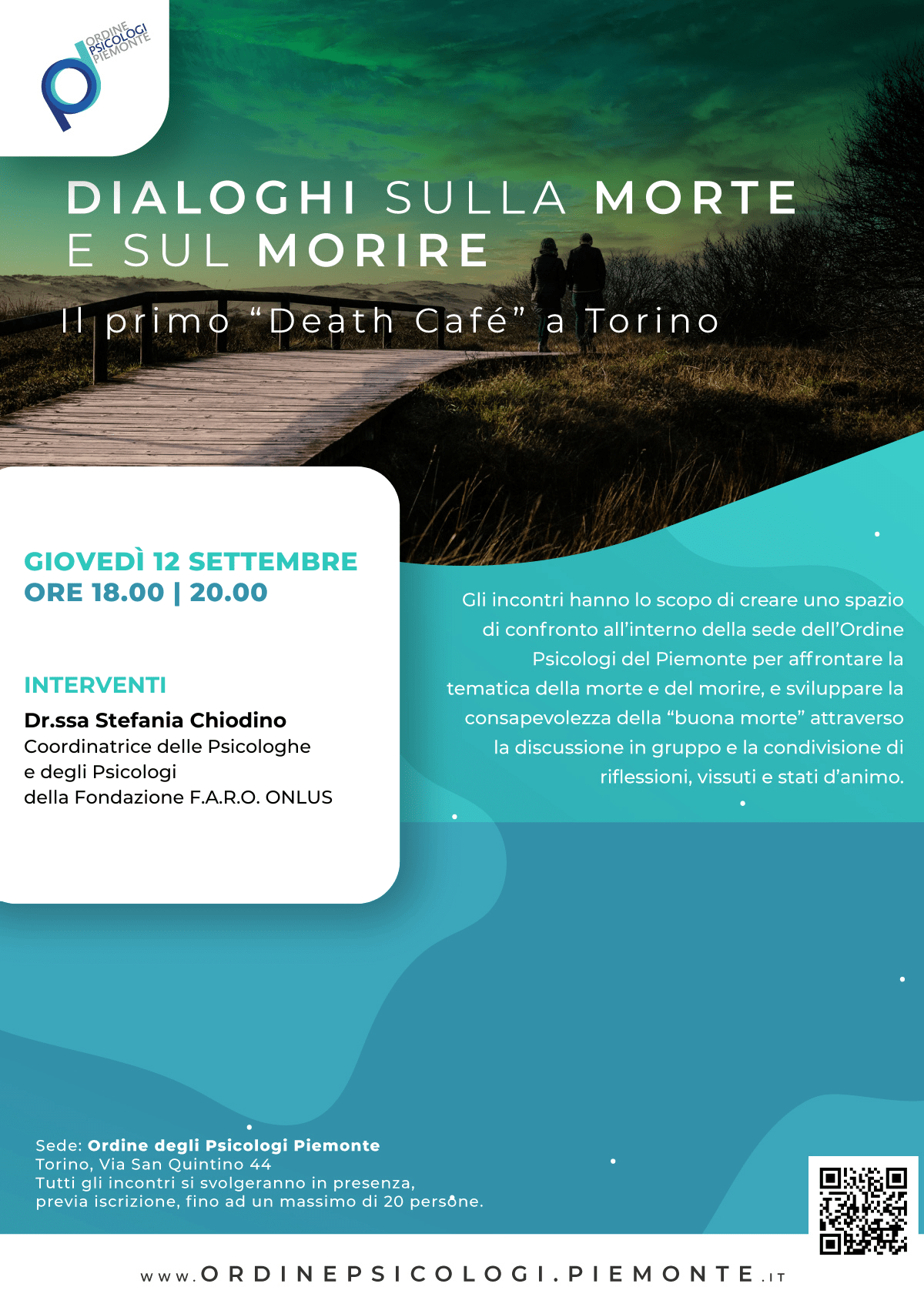 secondo incontro del ciclo di appuntamenti di condivisone emotiva, intellettuale e filosofica, dedicato al tema della morte, si terrà martedì 12 settembre 2024, dalle ore 18.00 alle ore 20.00, presso la sede dell’Ordine, in via San Quintino 44 a Torino.