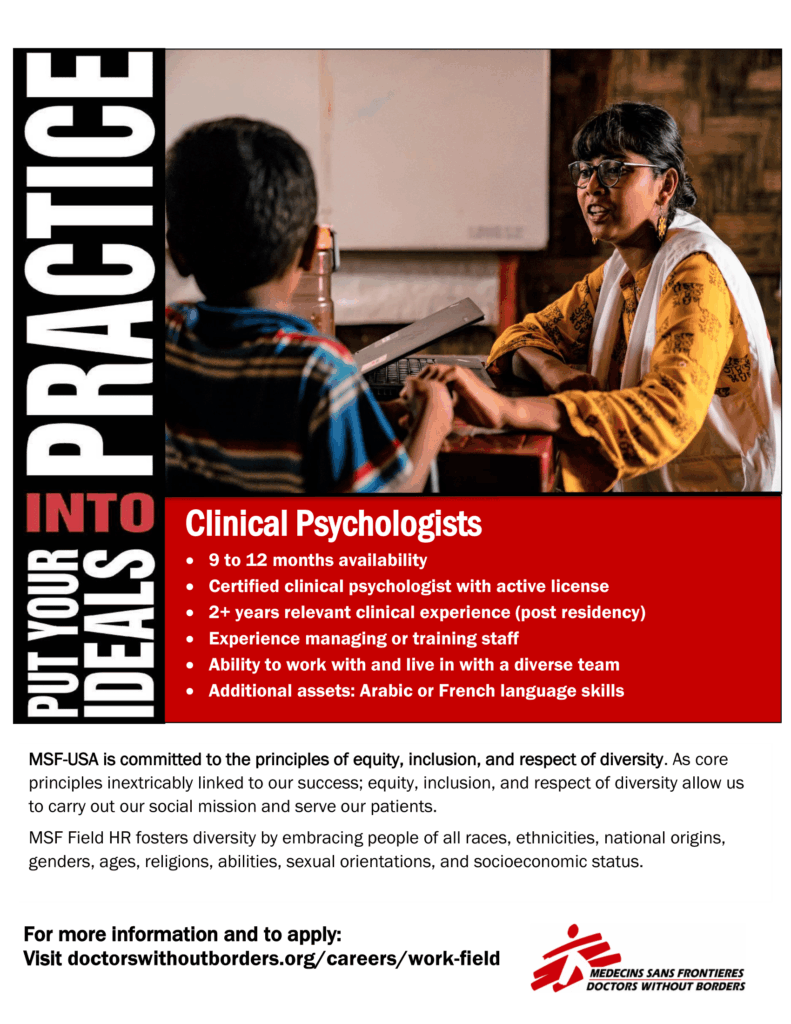 [GLOBALPSYCHOLOGYALLIANCE] Bando per Psicologhe e Psicologi clinici di Medici Senza Frontiere