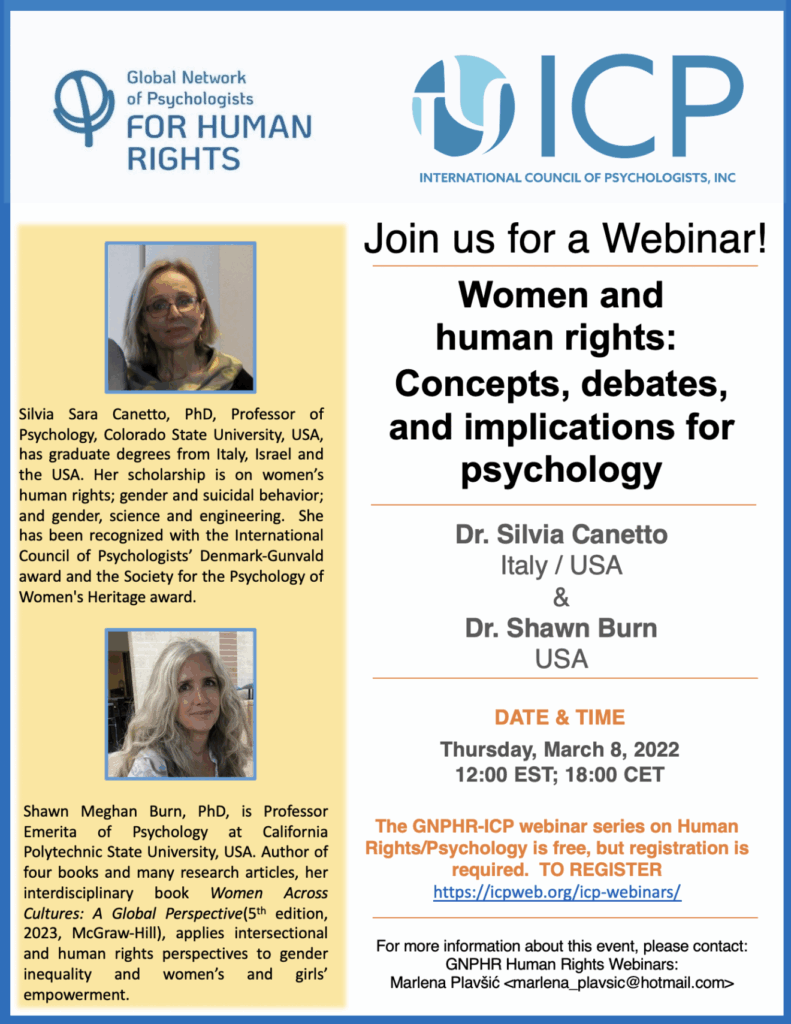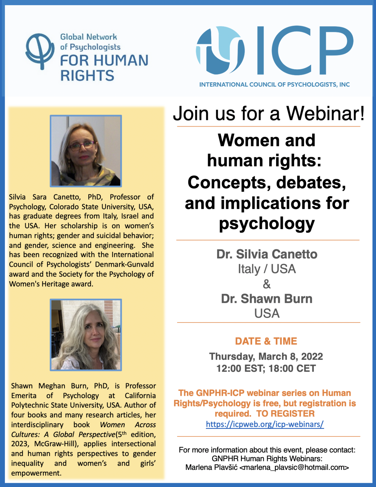 Gentili Colleghe e Colleghi, Come membro della Global Psychological Alliance (GPA), l’OPP vi invita a partecipare al Global Network per seguire il 2° webinar del ciclo di seminari dedicati a Diritti Umani e Psicologia. Please join the Global Network of Psychologists for Human Rights in a webinar on March 8, 2022 at 12 pm EST. More information here: https://humanrightspsychology.org/webinarseries/ […]