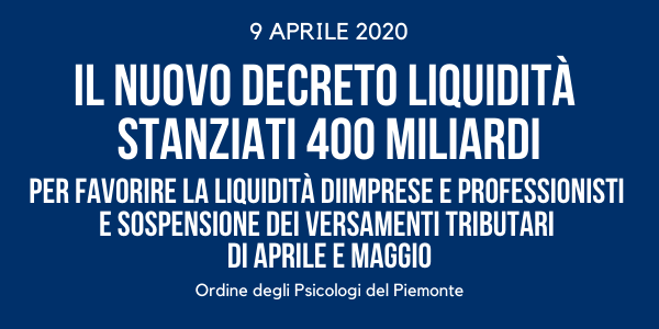 Stanziati 400 miliardi per favorire la liquidità di imprese e professionisti e sospensione dei versamenti tributari di aprile e maggio